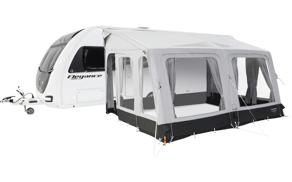 Dometic Grande Air Tour on erityisen tilava ja mukava ilmatäytteinen etuteltta, joka soveltuu sekä matkailuautoihin että asuntovaunuihin. Etuteltta on saatavilla eri kokovaihtoehdoissa ja useille asennuskorkeuksille, mikä tekee siitä joustavan ratkaisun erilaisiin ajoneuvoihin ja käyttötarpeisiin.