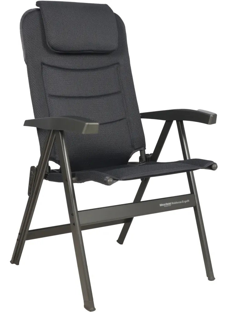 Westfield Noblesse ErgoFit on ergonominen ja ylellinen kokoontaitettava retkituoli, joka tarjoaa poikkeuksellisen istuinmukavuuden leirintäalueella, matkailuauton edustalla tai terassilla. Tuolissa on 7-portaisesti säädettävä selkänoja sekä säädettävä niskatuki, joiden ansiosta istuma-asento voidaan mukauttaa yksilöllisesti.